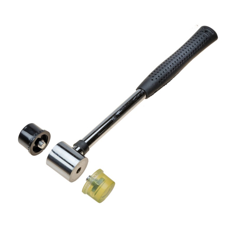 Leichter Schonhammer mit zwei wechselbaren Kunststoffköpfen. Optimal für Karosseriearbeiten, Blechbearbeitung und empfindliche Metallteile. Mit stabilem Stahlstiel und rutschfestem Griff für sicheres Arbeiten.