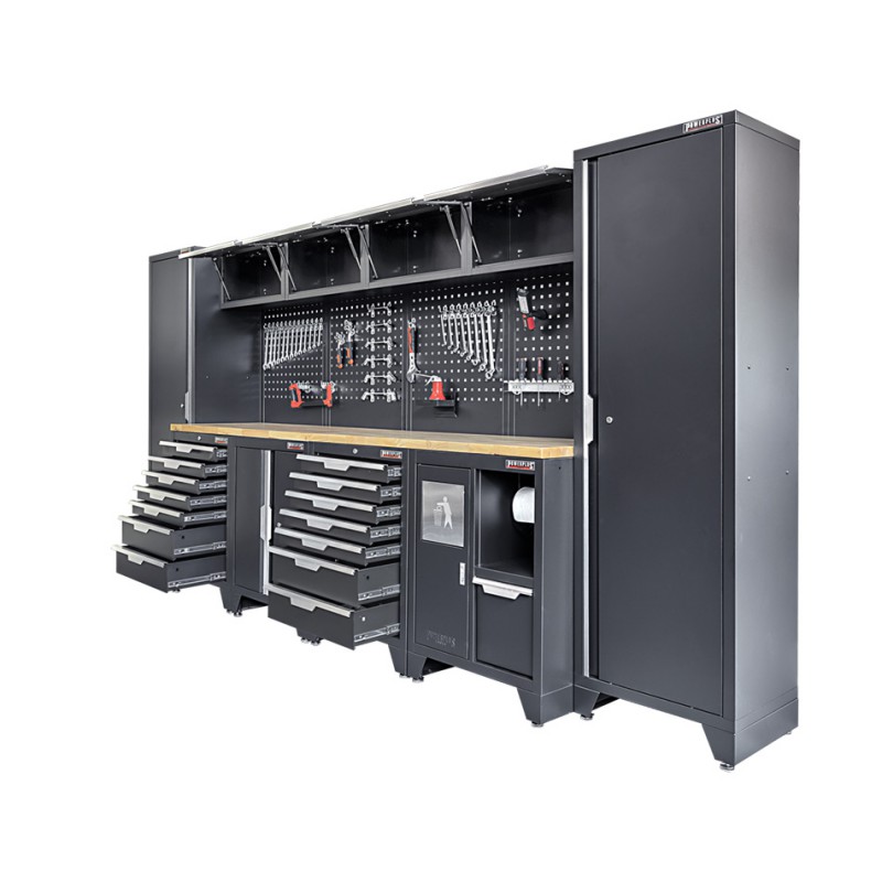 Dieses Set stattet Ihre Werkstatt mit allem aus, was für eine reibungslose Organisation erforderlich ist – hochwertige Materialien und ein ergonomisches Design garantieren höchste Zufriedenheit.