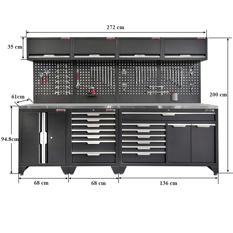 Alles, was Sie für eine effizient eingerichtete Werkstatt benötigen, bietet dieses Set – es überzeugt mit hochwertigen Materialien und einem ausgeklügelten Design. Ideal für Handwerker und Heimwerker, die hohen Wert auf Qualität und Funktionalität legen.
