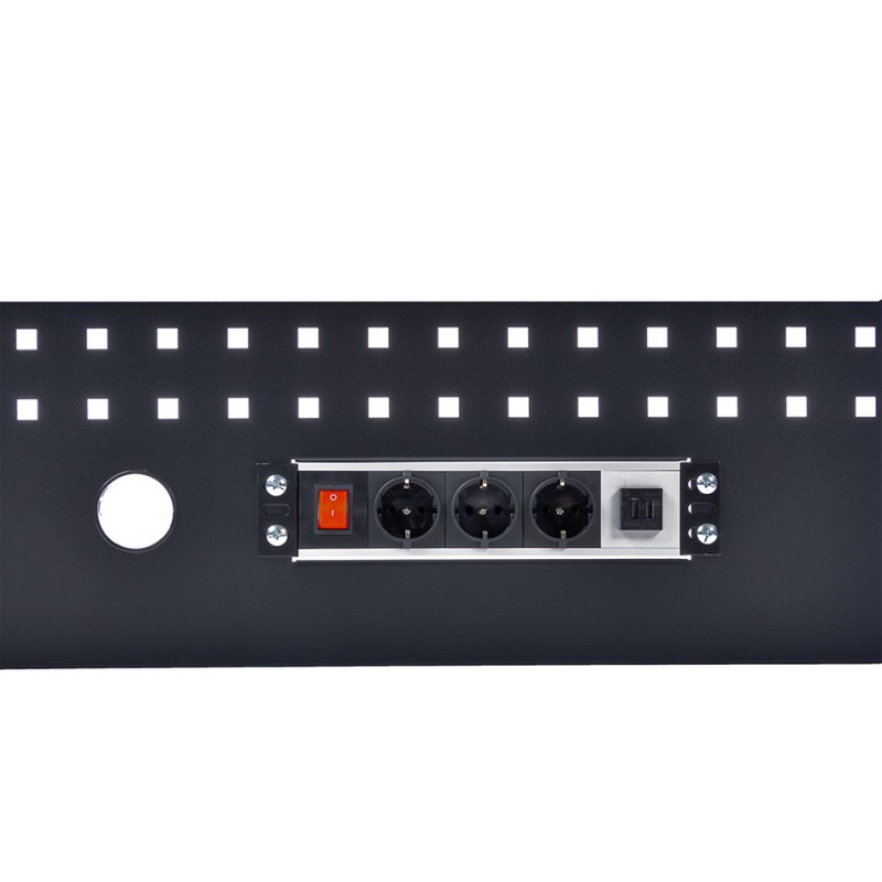 1 x Werkzeuglochwand Mattschwarz 3 Steckdosen und 2 USB Ladeanschlüssen (Artikel-Nr.: PP-T 1780CS)