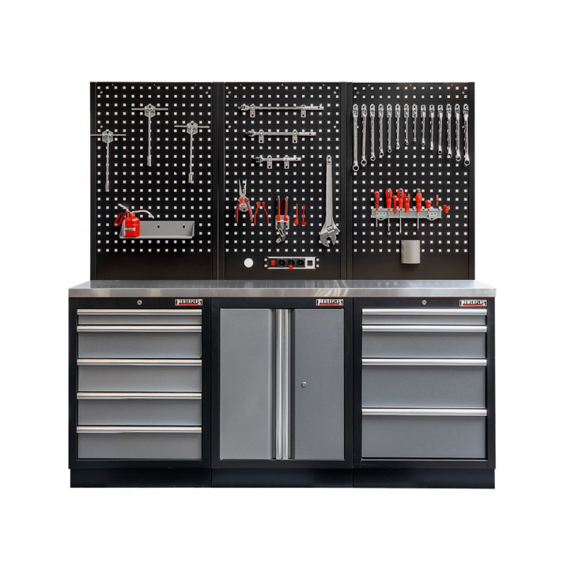 Komplette Werkstatteinrichtung mit Mattschwarzer Lochwand bestehend aus:
