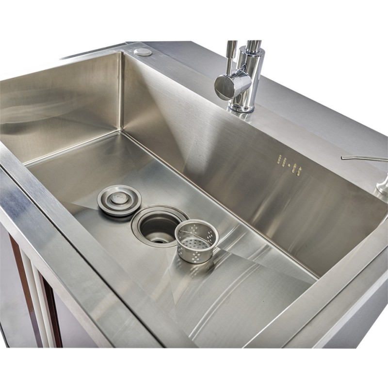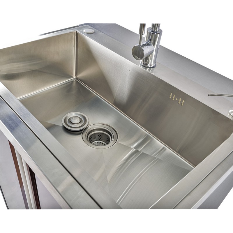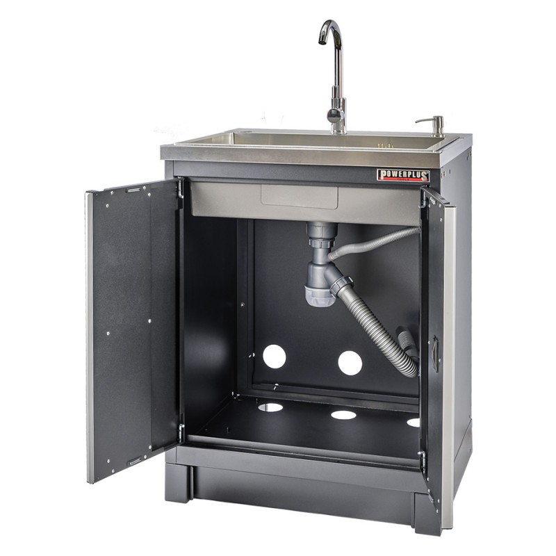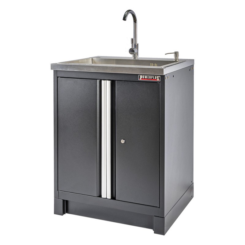 Werkzeugschrank Mattschwarz aus Metall mit 2 Türen und Waschbecken aus Edelstahl 72 x 60 x 94,5 cm