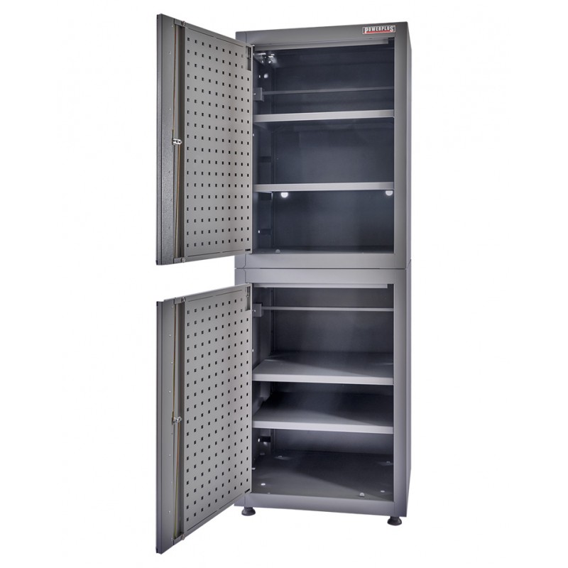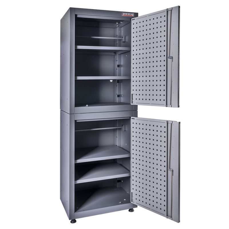 Integrierte Werkzeuglochwand in den Türen mit 12 x 12 mm Lochraster, passend für Powerplustools Werkzeughaken