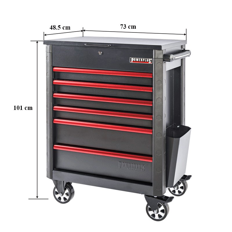 Der Werkzeugwagen mit 6 Schubladen und Deckel ist die ideale Lösung für Werkstätten, Garagen und professionelle Arbeitsbereiche. Dank durchdachtem Design und hochwertiger Verarbeitung bietet er maximale Funktionalität und Sicherheit für Ihre Werkzeuge.